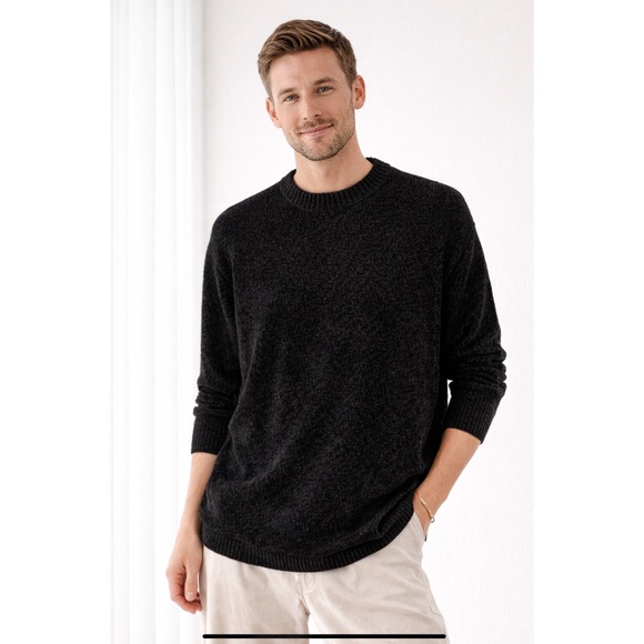 grandpacore, modern grandpa, heritage style, vintage inspired, classic menswear, preppy style, ivy league, collegiate look, old money aesthetic, professor core, refined casual, quiet luxury, understated luxury, elevated basics, european style, italian knitwear, chenille sweater, plush chenille, soft textured knit, cozy feel, crewneck sweater, pull on knit, black essential, neutral staple, fall winter layering, weekend wear, office casual, capsule wardrobe, timeless classic, relaxed sophistication