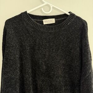 No size tag, fits a Men XXL, black pullover, chenille feel, crewneck.