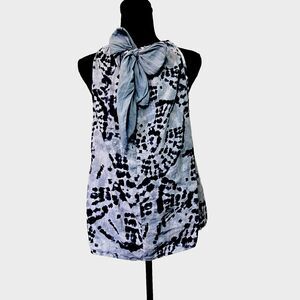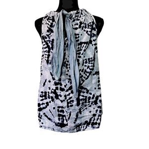For sale is this Bellambia Made in Italy 100% Linen with cotton detail Tie Dye Navy & Blue Gray tank top in size small. This tank has a wide ribbon tie closure and is hand wash or dry clean. Great summer tank!
