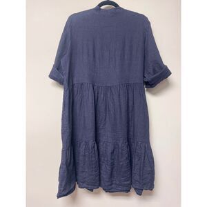 BELLAMBIA Navy Blue 100% Linen Roll Tab Sleeve Baby Doll Dress, Sz M