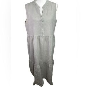 BELLAMBRA Made In Italy Linen Split Neck Tiered Sleeveless Linen Dress Size L