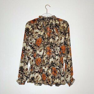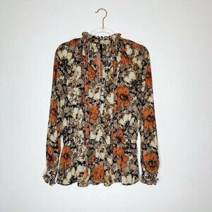 BELLATRIX Top Women M Fall Color Floral Print Long Sleeve Chiffon