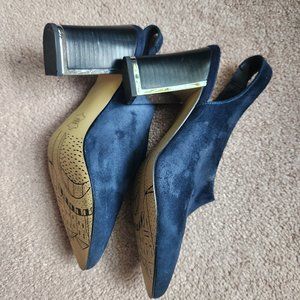 BELLA-VITA women's shoes Blue Leather/Suede Heels size 8W sling back.