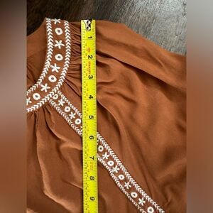 BELLDINI caramel color with off white scalloped trim Embroidered Peasant Top Lg