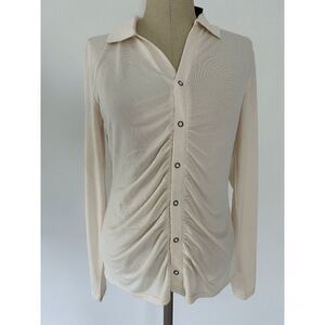 BELLDINI Black Label Button-Front Collared Top Ivory M