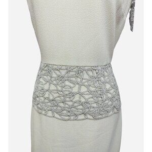 BELLE BADGLEY MISCHKA Kamila Dress Size 8 Ivory Sheath Silver Sleeves Peplum NWT