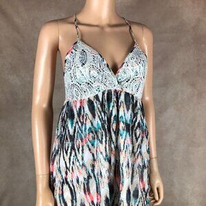 BELLE DU JOUR Juniors' Multi-Color Printed Crochet-Trim Maxi Dress NWT Medium