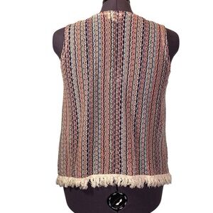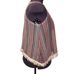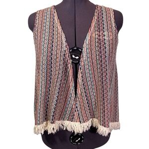 BELLE DU JOUR women plus sz 2X crochet knit vest open front fringe boho hippie