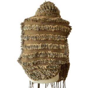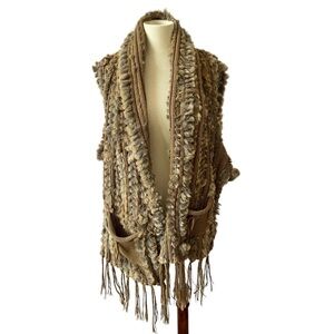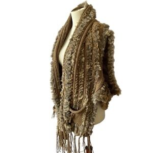 BELLE FARE CARDIGAN VEST OS OPEN FRONT POCKETS FRINGE HIPPIE RABBIT FUR SHAWL