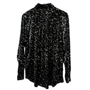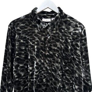 BELLE Kim Gravel Velvet Shirt Black Leopard Stretch Womens Button Down Top