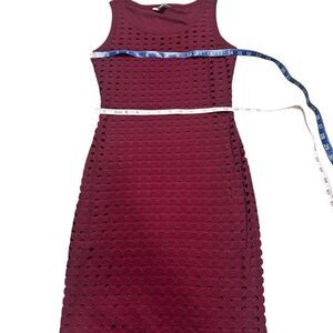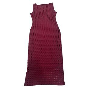 BELLE SKY Women's Burgundy Sleeveless Perforated Laser Cut Midi Dress Size XS