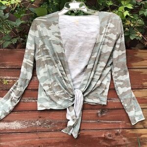 BELLE by KIM GRAVEL CAMO LONG SLEEVE OPEN TOP TIES AT BELLY SIZE SMALL