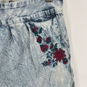 BELLFIELD Floral Embroidered High Waist Chambray Light Acid Wash Shorts Cotton