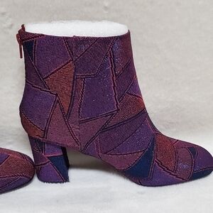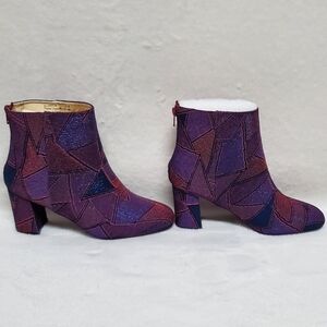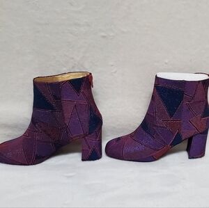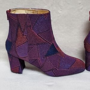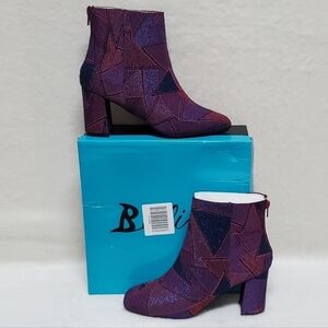Bellini Glamour Shimmer Metallic Patchwork Knit Chunky Block Heel Back-zip Ankle Booties.