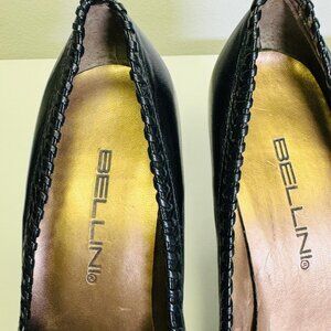 Step out in elegance with these stunning Bellini Size 7 black patent leather open-toe heels, a perfect blend of style and comfort for any occasion. Each shoe boasts a glossy patent leather upper that exudes classic sophistication, while the open-toe design adds a touch of modern flair. The front of each shoe is adorned with a charming pleated detail and a delicate bow, creating an eye-catching display that complements the overall design. Intricate stitching around the edges showcases the quality craftsmanship invested into each pair. The interior is lined with a smooth material, likely a synthetic or leather blend, that caresses your feet with every step. The slim and sleek heel measures approximately 2 to 3 inches, offering you a subtle lift without compromising stability.