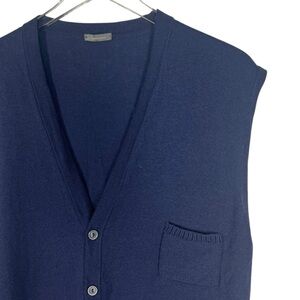 BELLWOOD 56 Fine Merino Wool Button Down V-Neck Sweater Vest Navy Blue