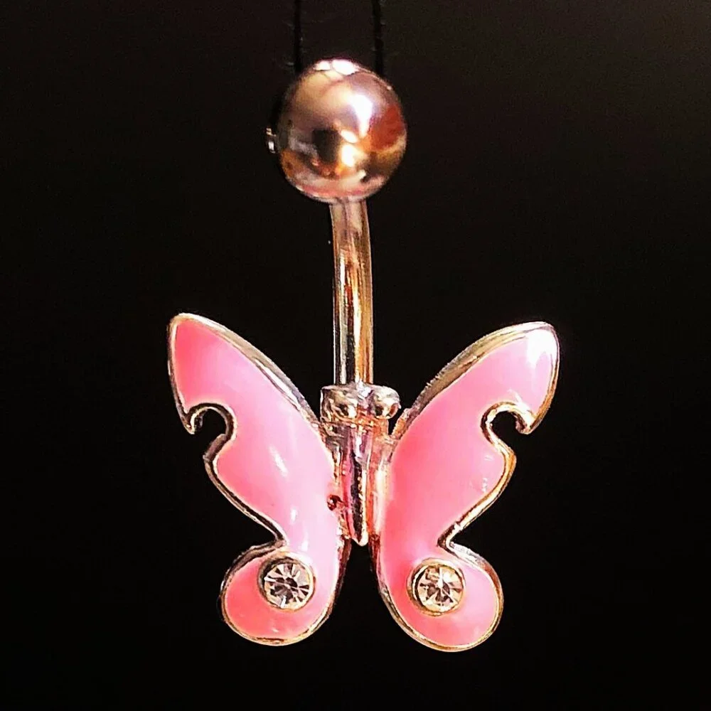 NEW, NO TAG. Butterfly Belly Ring, pink enamel with 2 small clear accent stones, silver post, 316L, surgical steel, 14G. BUNDLE (2) or more Items from Sage's Closet & DEFINITELY SAVE 30%! A Shipping Discount may also apply! BUNDLE, BARTER, & DISCOVER YOUR SAVINGS!!! AAAALLLL OFFERS CONSIDERED!!