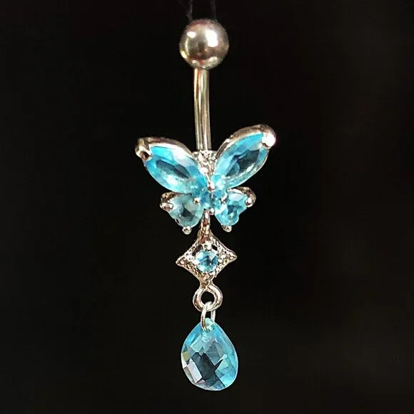 NEW, NO TAG. Butterfly Belly Ring, light blue stones with square and teardrop accents, 316L, surgical steel, 14G. BUNDLE (2) or more Items from Sage's Closet & DEFINITELY SAVE 30%! A Shipping Discount may also apply! BUNDLE, BARTER, & DISCOVER YOUR SAVINGS!!! AAAALLLL OFFERS CONSIDERED!!