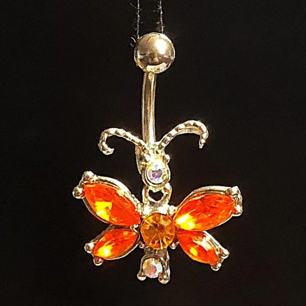 NEW, NO TAG. Butterfly Belly Ring, bold orange stones with clear stone accent, 316L, surgical steel, 14G. BUNDLE (2) or more Items from Sage's Closet & DEFINITELY SAVE 30%! A Shipping Discount may also apply! BUNDLE, BARTER, & DISCOVER YOUR SAVINGS!!! AAAALLLL OFFERS CONSIDERED!!