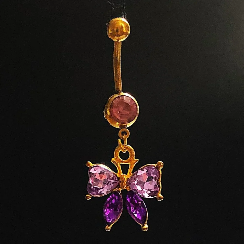 NEW, NO TAG. Butterfly Belly Ring, two-tone purple stones with light pink post stone, gold post, 316L, anodized, 14G. BUNDLE (2) or more Items from Sage's Closet & DEFINITELY SAVE 30%! A Shipping Discount may also apply! BUNDLE, BARTER, & DISCOVER YOUR SAVINGS!!! AAAALLLL OFFERS CONSIDERED!!