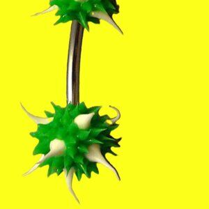 NEW, NO TAG. Green & white, 1/4", silicone, spiked ball Belly Ring, 316L, surgical steel, 14g. BUNDLE (2) or more Items from Sage's Closet & DEFINITELY SAVE 30%! A Shipping Discount may also apply! BUNDLE, BARTER, & DISCOVER YOUR SAVINGS!!! AAAALLLL OFFERS CONSIDERED!!