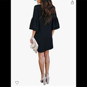 BELONGSCI Women's Dress Sweet & Cute V-Neck Bell Sleeve Shift Dress Mini Dress