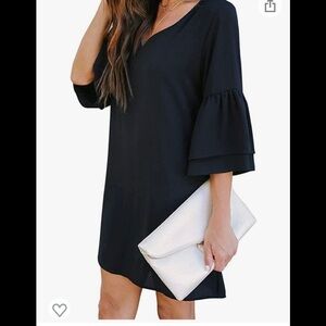 Features: short dress, V-neck, bell sleeve, shift dress, sweet & cute, soft and attractive