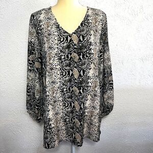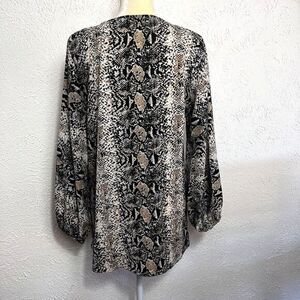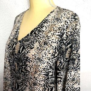 BELONGSCI Women's Loose Blouse Long Sleeved V-Neck Top Medium Animal Print