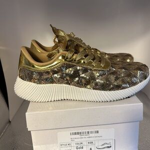 BELOS memory foam shoes new in the box size 6. Beautiful gold sequins.