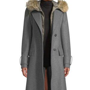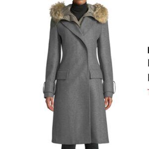 BELSTAFF ENGLAND WOMEN'S GRAY VIRGIN WOOL COAT REMOVABLE FUR COLLAR ITALY