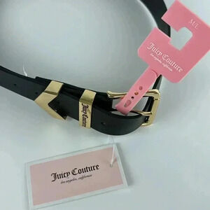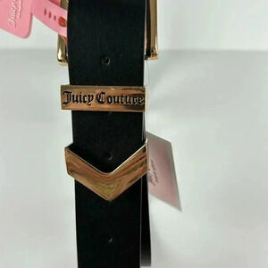 JUICY COUTURE NWT BLACK BELT SIZE MEDIUM/LARGE WITH GOLDTONE ACCENTS WITH THE JUICY COUTURE NAME ON THE BUCKLE STYLISH VERSATILE GREAT FOR SKIRTS PANTS JEANS DRESS