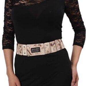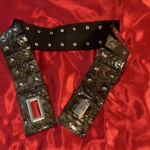 BELT BLACK Smoked Boho 42" Stretch Cinched Belt Faux Patent Leather Crocodile