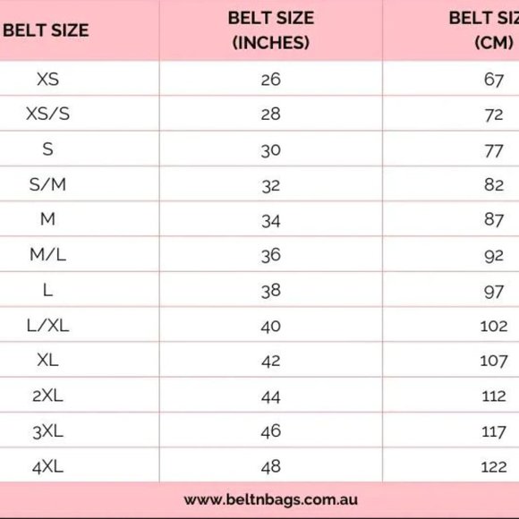 BELT SIZE inches and centimeter
