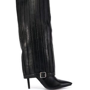 Elevate your wardrobe with these sleek black over the knee boots. Perfect for adding a touch of elegance to any outfit.
