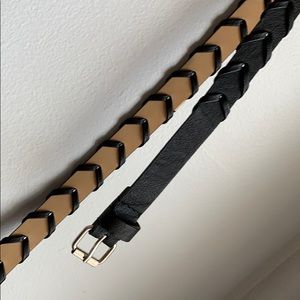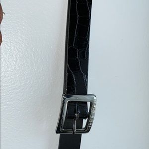 • The second one is a shimmery black leather with a silver buckle. It’s never been worn and in great condition!