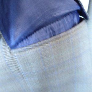 Made in Italy..gray with blue accent plaid..fully lined..measures at a size 42 to 44..