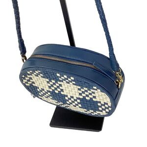 Bembien Ovale Crossbody in Blue Check. A woven plaid pattern lends a vintage touch to this classic oval bag.