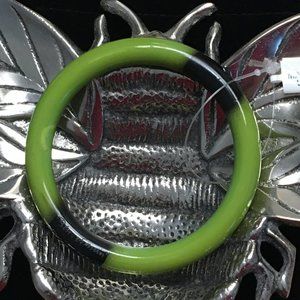 BEN AMUN Bangle Cuff Bracelet Retro Vintage in Green + Black Polished Wood New
