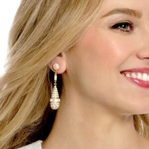 BEN AMUN JEWELRY Crystal Drop Deco Earrings in Gold Plate