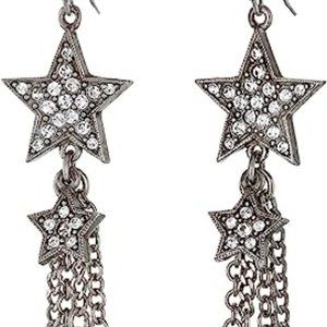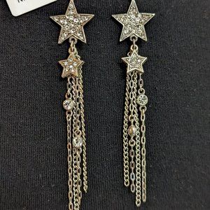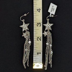 BEN AMUN JEWELRY Crystal Star Dangle Earrings in Silver New