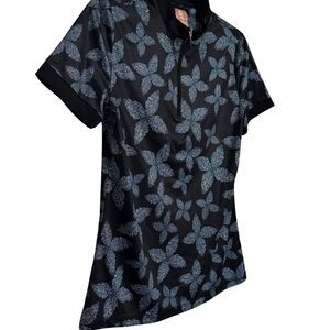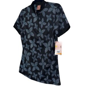 BEN HOGAN Short Sleeve Pixel Floral Sun Quarter Zip Performance Knit Top NWOT S