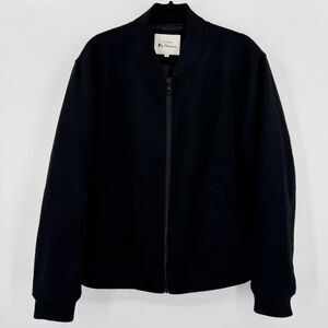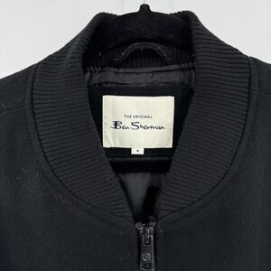 BEN SHERMAN Black Wool Blend Blue Depths Varsity Bomber Jacket Size M