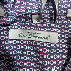 BEN SHERMAN White w/ Blue & Red Print Short Sleeve Button Front Shirt Sz XL