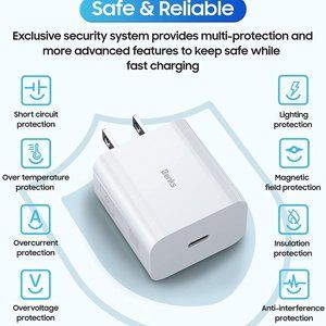 ⚡【Ultra-Safe & Multiple Protections】BENKS-Ultimate-S 20W PD Wall Charger Adapter has TUV Rheinland High- Standards certificated , Adapter shell made with high-quality fireproof PC plastic. it is equipped with protection function such as over-voltage, over-current, over-temperature, short-circuit, lightning, magnetic field, insulation, anti-interference, guarantee safety issue during the charging, provide a safer fast charging environment and Keep your phone's battery in a healthy state.