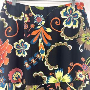 BENTLEY A. Y2K Black Multicolor Floral Midi Skirt Ruffles Womens 8 Fairy Whimsy