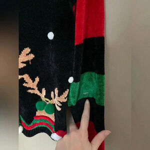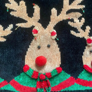 This early 90s Rudolph style reindeer, chenille feeling buttery soft Christmas sweater is cute and festive.