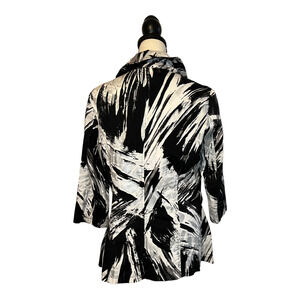 BEREK2 Black White Abstract Print Collar Zip Jacket Neiman Marcus Size Medium
