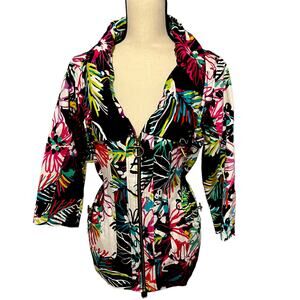 BEREK2 Multi Color Floral Ruffled Collar Zip Jacket Neiman Marcus Size Small