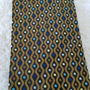 BEREND DEWITT TURQUOISE BLACK YELLOW GREEN DOTTED 100% SILK TIE. 58" long. All measurements are approximate and taken flat.