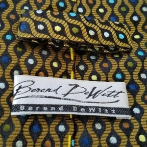 BEREND DEWITT BLACK TURQUOISE YELLOW 100% SILK TIE